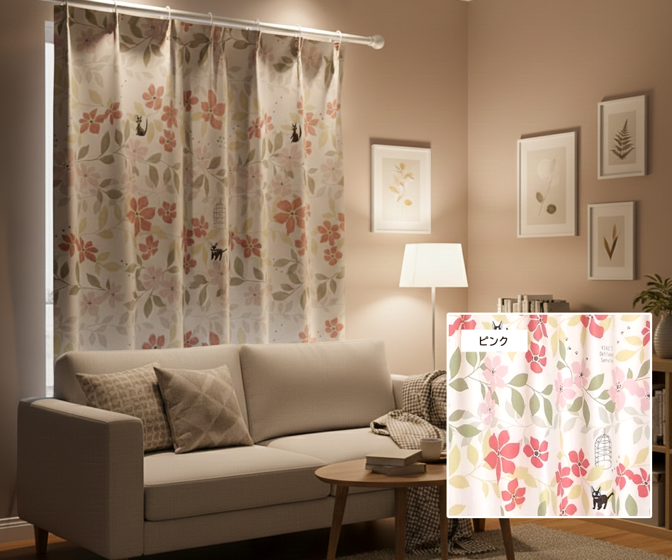 アンフルール ピンク お花畑で元気に遊ぶジジの姿を描いた、華やかでロマンチックな遮光カーテン。キキと離れて少し寂しくなったジジも、カラフルなお花に囲まれてご機嫌にお散歩中。まるでお部屋に花が咲いたような明るいデザインが、毎日をちょっぴりハッピーに彩ってくれます。夢と癒しが詰まった1枚です。 |